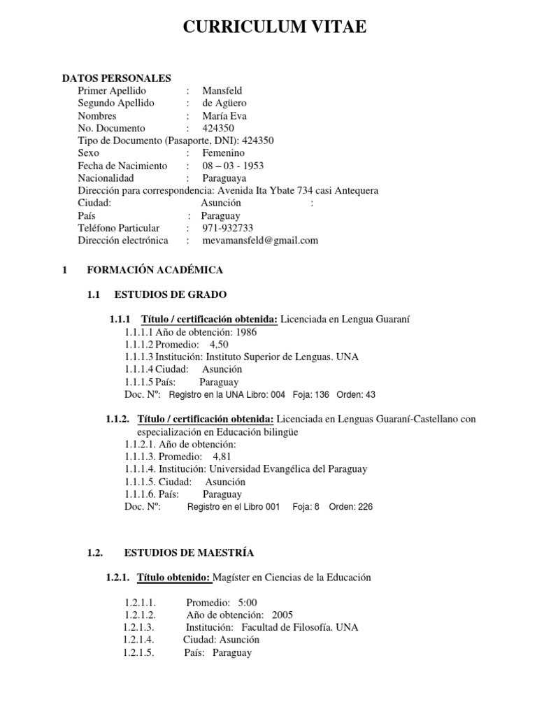 Currículum Vitae Ejemplos Paraguay - Ejemplos De Curriculum More Photos / Encuentra un ejemplo de curriculum vitae adaptado a tu profesión y situación laboral.